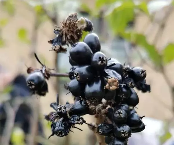 果实采收:一般栽培后的第3年即开始结实。9月下旬至10月上旬浆果完全变为紫褐色,充分成熟时采收。采收时先用手托住果穗,再用剪子在果梗基部剪下,储存于通风阴凉处。