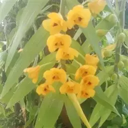 束花石斛是兰科石斛属植物。茎粗厚,肉质,下垂或弯垂,圆柱形,不分枝,具多节。叶二列,互生于整个茎上,…