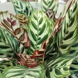 红背卧花竹芋枝叶挺拔,叶面绿色,背面红色,十分耐看,是较好的室内观叶植物。盆栽宜点缀宾馆厅堂、车站…