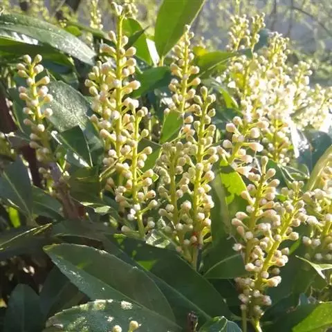 桂樱,蔷薇科(Rosaceae)常绿灌木,学名为Prunus laurocerasus或Laurocerasus officinalis。长绿灌木,5~15米高,60厘米宽,花小,白色,花簇细长,长5~12公分。树叶呈深绿色,叶光滑,卵形或披针形,长10~15公分(4~6吋);10~25厘米宽,4~10厘米长,周围稍微成锯齿状。花蕾在春天出现,在夏天开放,7~15厘米的总状花序包含30-40个花朵,每个花朵1厘米宽。果实为一种的1~2厘米宽的浆果,在秋天变成黑色。卡罗琳桂樱(P. caroliniana)是其近缘种。