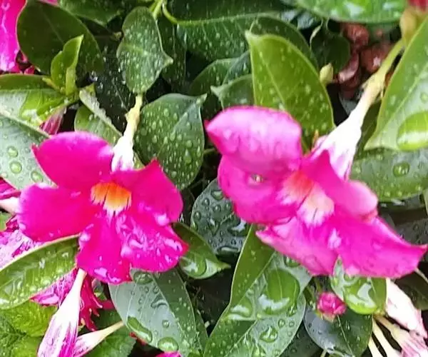飘香藤(学名:Mandevilla laxa (Ruiz et Pav.) Woodson)是夹竹桃科双腺藤属植物。原产美洲热带,为夹竹桃科多年生常绿植物。飘香藤的缠绕茎柔软而有韧性,顺着支架盘旋而上,粉红似喇叭的花儿大而直挺,花茎能达到6~8厘米。