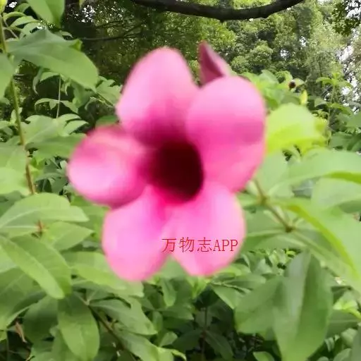双腺藤的叶椭圆形、硕大,叶面皱,近全缘,叶色浓绿、富有光泽先端急尖,革质;花色艳丽,漏斗形,多为深粉红色; 花枝优美独特,枝条柔软,可做各种造型。双腺藤从初春到深秋花开不断,花朵从下至上一直开放,花朵的颜色从春到夏越来越深,越来越艳丽,给人以花开富贵的感觉,观赏价值极高,惹人喜爱。