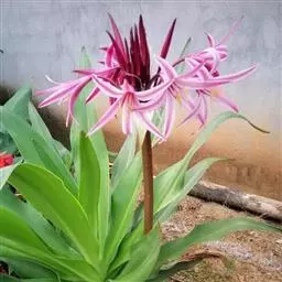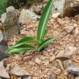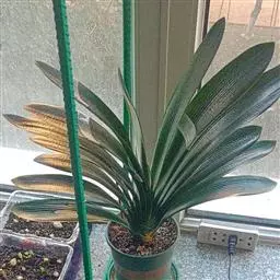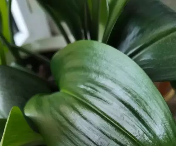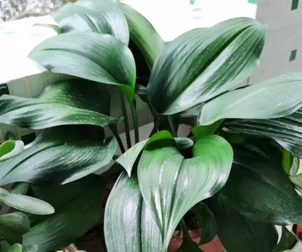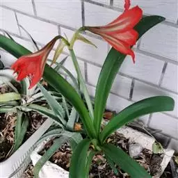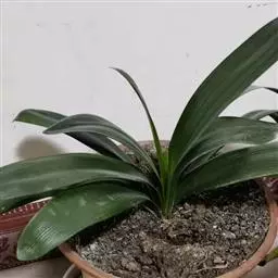 多年生常绿鳞茎类观赏花卉。地下鳞茎长圆球形,鳞茎着生白色肉质根,分枝较多,根系发达鳞茎周围毎年春季都要萌发幼小的侧枝。叶片长宽椭圆形,一般长约30-35厘米,宽为15-18厘米,表面暗绿色,背面绿色,纵向脉纹明显,每个鳞茎有叶片4-5片。栽培一个小鳞茎,大约2-3年才能开花。