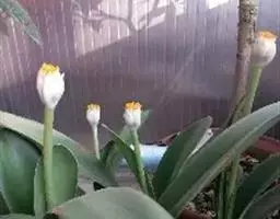上盆栽培:南美水仙小鳞茎的栽培,是分株繁殖的一项重要工作,基质消毒后,要经过一星期的晾晒,才能装入苗床,并用粗河砂等做好排水层。栽培时,将幼苗植于花盆中央,如果是木箱苗床,可按6厘米×6厘米的株行距进行栽培。深度以埋住子鳞茎、能够稳固株体为度,幼苗与基质必须密切贴合。对于因浇水而倾斜的植株,要随手扶直,必要时,插上细竹竿加以保护;如果分株苗只有鳞茎,没有根系,栽培时,可用纯河砂催根。河砂在使用前必须用100℃的鲜开水冲洗,杀菌消毒。一般经过30-40天的精心养护,就能顺利长出新根。