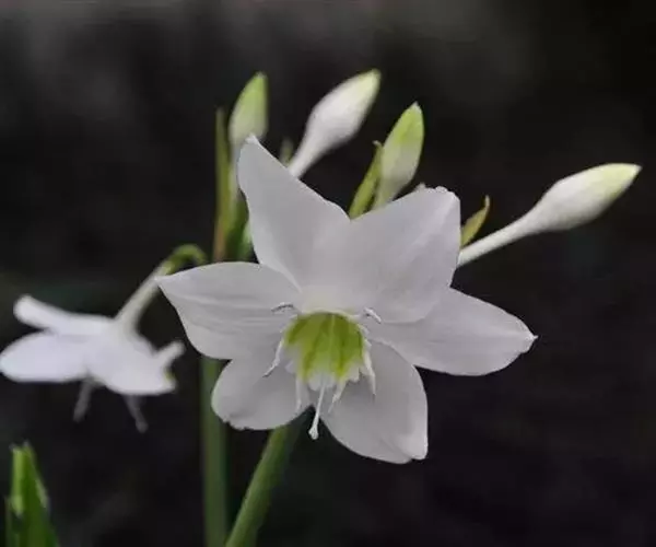 南美水仙是一种宜于室内莳养的观叶观花鳞茎花卉。宽大的带状叶片飘逸豪放,花朵硕大,洁白无瑕,清香四溢,一年多次开花。可装点庭院,绿化阳台,美化室内环境,是一种应用范围很广的花卉。