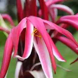 红花文殊兰是石蒜科文殊兰属年生常绿草本植物,高可60-100厘米。叶片大,宽带形或箭形先端尖,…