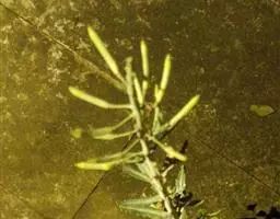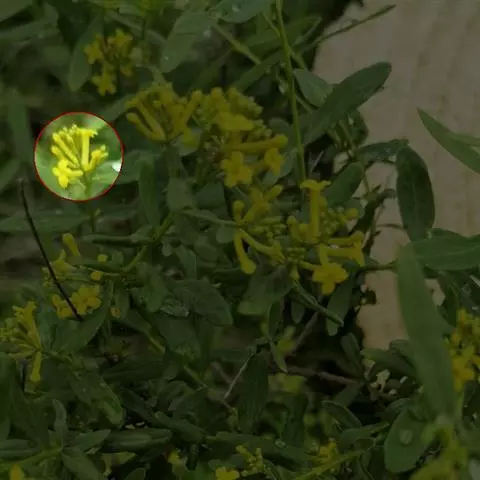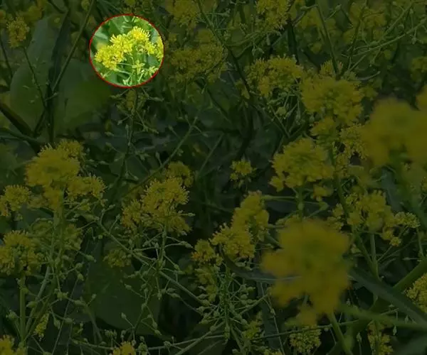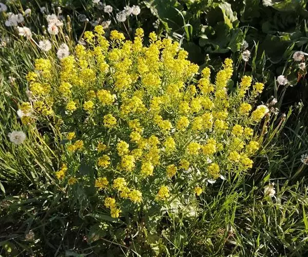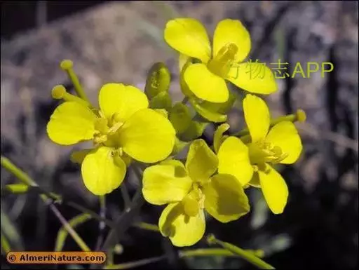 总状花序顶生,初密集,花后延长;萼片椭圆状披针形,内轮2枚顶端隆起成兜状,长2.5-3毫米,宽0.5-1毫米;花瓣黄色,长倒卵形,长3-4.5毫米,宽0.7-1.2毫米,基部具爪。长角果线状四棱形,长2-3.5厘米,紧贴果轴而密集着生,果熟时稍开展,果瓣隆起,中脉显著。种子椭圆形,长约1.5毫米,宽约0.5毫米,深褐色,表面具细网纹;子叶缘倚胚根。花、果期5-8月。