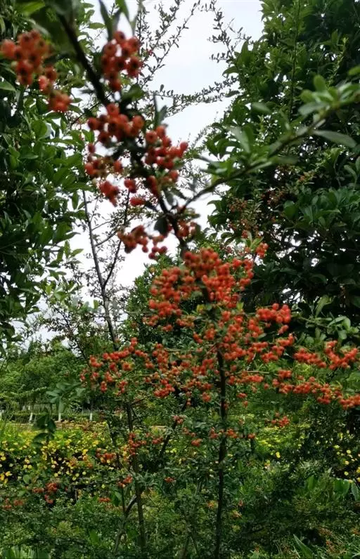火棘作为风景林地的配植,可以体现自然野趣。