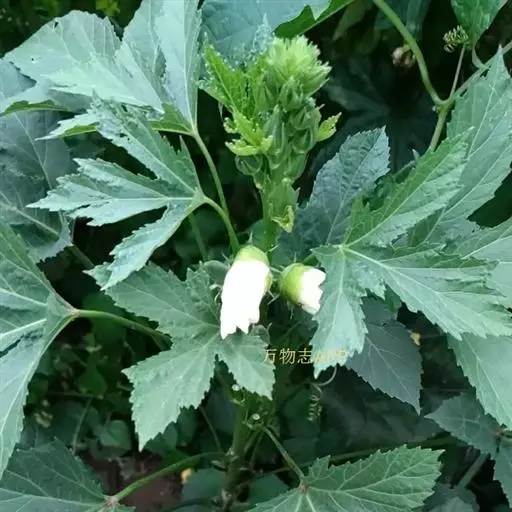 咖啡黄葵 Moench)亦称黄秋葵,是锦葵科一年生草本植物。茎圆柱形,疏生散刺。叶掌状,裂片阔至狭,…