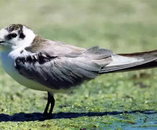 为小型水禽,体长24-27厘米。嘴较长而尖,黑色。脚红褐色。夏羽头、颈和下体黑色,背和尾灰色。尾下覆羽白色,尾呈叉状。翅下覆羽亦为白色。冬羽前额和下体白色,后头和枕黑色,耳区有一黑色斑,与头顶黑色相连,并向下延伸至眼下。胸两侧有粗著的黑色斑。上体和翅灰色,翅下覆羽白色。叫声为短促带鼻音的尖叫kyeh,联络声为klit。