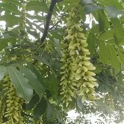 胡桃楸是胡桃科、胡桃属的乔木植物。株高可达20余米;茎皮灰色;叶椭圆形、长椭圆形、卵状椭圆形或长椭圆状披针形,具细锯齿,上面初疏被短柔毛,后仅中脉被毛,下面被平伏柔毛及星状毛;雄葇荑花序轴被短柔毛,雌穗状花序轴被茸毛;果序俯垂,果球形、卵圆形或椭圆状卵圆形,顶端尖,密被腺毛,果核棱间具不规则皱曲及凹穴,顶端具尖头;种仁较小;花期5月;果期8-9月。胡桃楸分布于中国黑龙江、吉林、辽宁、内蒙古、山西、河南、河北等省地,朝鲜、俄罗斯、日本等国家亦有分布。其喜温暖凉爽的生存环境,适宜在土层深厚、疏松肥沃、排水良好的黑垆土上栽培。一般繁殖方式为种子繁殖。胡桃楸具有止痛、敛肺定喘、温肾润肠、清热解毒等功效,可用于治疗胃痛、神经性皮炎、体质虚弱、肺虚咳嗽、肾虚腰痛、细菌性痢疾等症状。因其木材反张力小、不挠不裂,可作枪托、车轮、建筑等重要材料。
