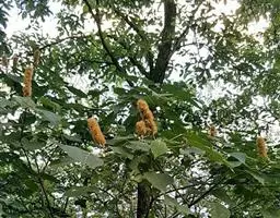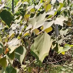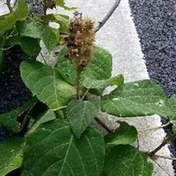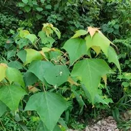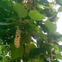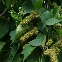 白楸叶 乔木或灌木,高3-15m;树皮灰褐色,近平滑;小枝、叶柄和花序均密被褐色或黄褐色星状绒毛。叶互生,生于花序下的常密集近轮生,卵形、卵状三角形或菱形,长5-15cm,宽3-10cm,顶端长渐尖,基部楔形或阔楔形,边近全缘或波状,上部有时具2裂片或粗齿;嫩叶两面均密被黄褐色或灰白色星状绒毛,成长叶上面无毛;基出脉5条,侧脉每边3-4条,第三级小脉横出,平行,基部近叶柄外有黑色腺体2个;叶柄稍盾状着生,长2-15cm。花雌雄异株,花序总状或下部具分枝,顶生;雄花序长10-20cm;苞叶卵状披针形,长约2mm,顶端渐尖;雄花在每苞片内2-6朵聚生;花蕾乱性或球形;花梗长约2mm;花萼裂片4-5,卵形,长2-2.5mm,外面密被星状 种子 毛;雄蕊50-60枚;雌花序长5-35cm雌花在每苞片内1-2朵;花梗长约1mm;花萼裂片4-5,长卵形,长2-3mm,不等大,外面密被星状绒毛;子房球形,被星状毛和皮刺,花柱3个,基部稍合生,柱头长2-3mm,背面羽毛状。蒴果扁球形,具钝三棱,直径10-15mm,密被褐色茸毛和皮刺,皮刺长4-6mm,被毛;种子近球形,深褐色,常有皱纹。花期:7-10月;果期:11-12月。