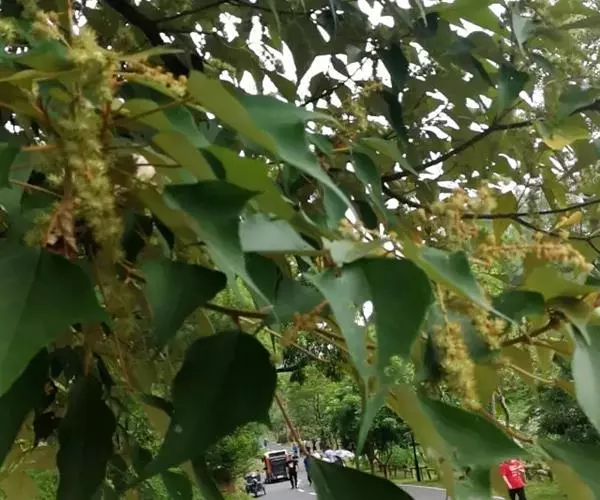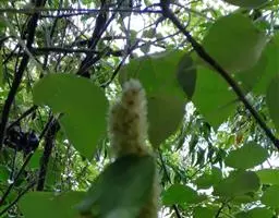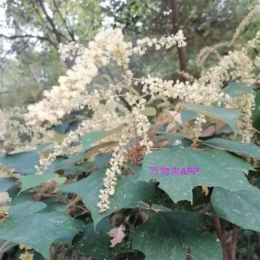 白楸属於大戟科野桐属,是生小乔木,成长时可高达5米。叶片大多为卵形,基部两个腺点分泌含糖的液体,吸引小昆虫舔食。叶面深绿色,背面则呈白色,每逢山风吹拂,叶片翻动,林海彷佛掀起滚滚白浪。
