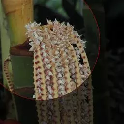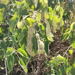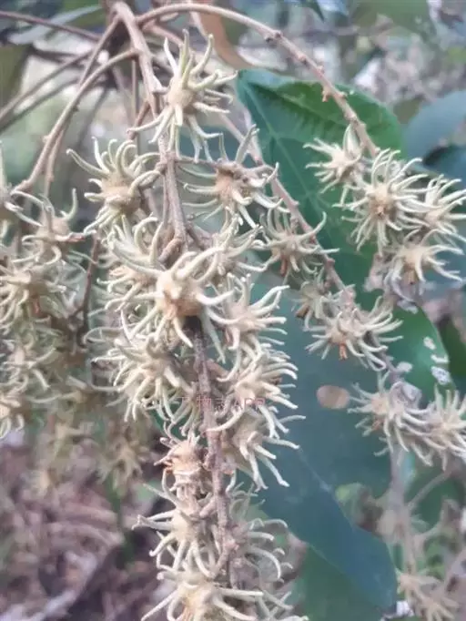 每年七月至十月间,细小而整齐的白花绽放,微带芳香。雌花和雄花长在不同花序,簇生於小枝条末端。果实在冬季成熟,被淡褐色毛,有柔软的长刺。