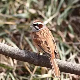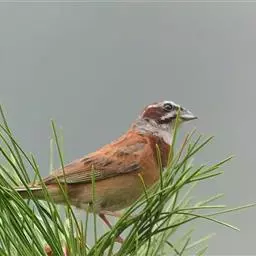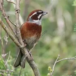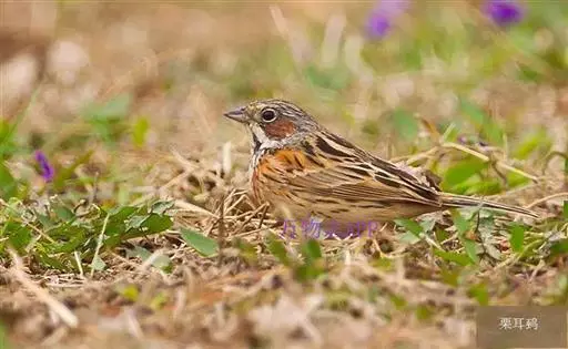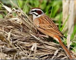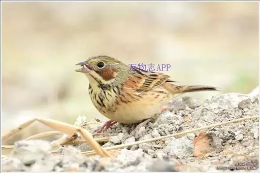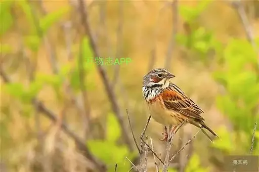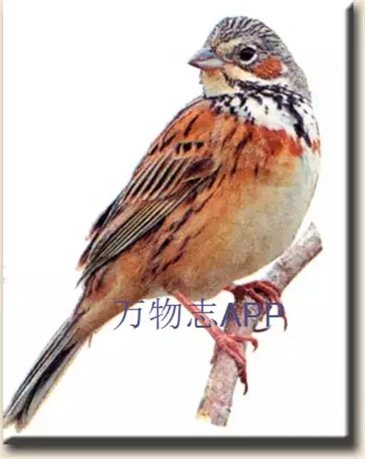 栗斑腹鹀:属小型鸣禽。体重19-25克,体长145-167毫米。头顶至背栗红色,眼先和颧纹黑褐色,…