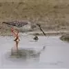 雌鸟与雄鸟相似。但上体较褐而少栗色,冬羽均具皮黄褐色羽缘。胸部黑色斑点较小而少,与黑色颚纹不相连结,有时甚至没有黑色胸带,仅有一条栗色胸带亦多不明显。
