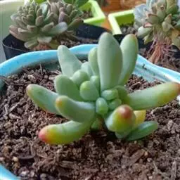 逆弁庆草土壤干透后再浇水,夏天是休眠期,不过休眠期很短,生长期是春秋二季,冬天能够忍耐零下3度低温。冬天温度太低生长会放慢,少水,生长期的阳光可以是全日照,阳光强了,植株会变的矮小,(花小胖胖多肉植物)叶片的间距会重叠,半匍匐在地上,也颜色也会呈现非常迷人的黄蓝色,非常的可爱。如果光照短,遮阳时间久了就容易长的高高的,叶片间距也不够紧凑,徒长明显,更加容易伏倒,变的不美观。