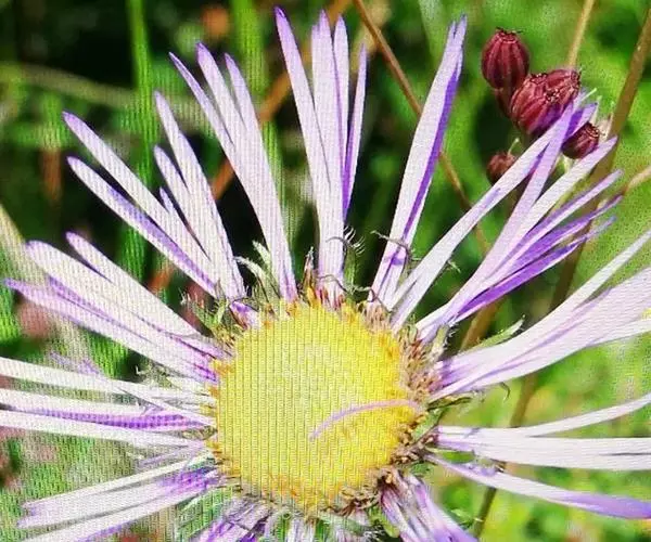 舌状花40-60个,管部长2毫米,上部有短毛;舌片紫色,稀浅红色,长13-25稀达30毫米,宽1.5-2.5毫米。