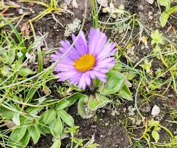 萎软紫菀为多年生草本,根状茎细长,有时具匍枝。头状花序在茎端单生。舌状花的舌片紫色,稀浅红色;管状花黄色;裂片被短毛。冠毛白色,外层披针形,膜片状。瘦果长圆形,被疏贴毛,或杂有腺毛,稀无毛。花果期6-11月。