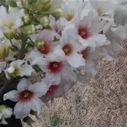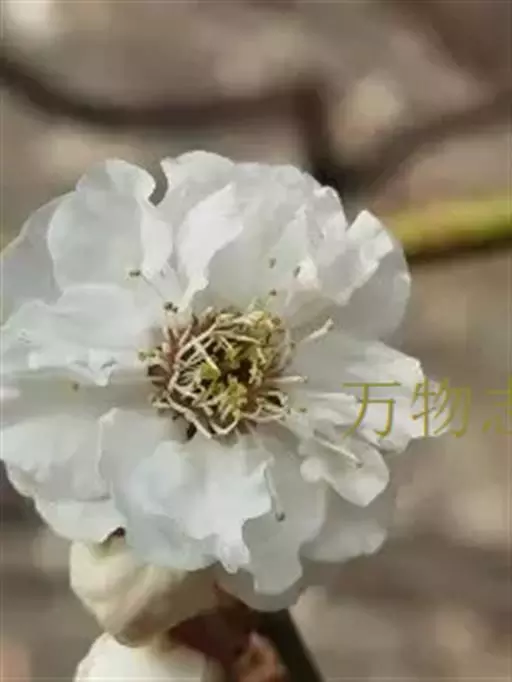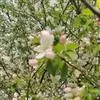 伞房花序,具花4-6朵,花梗长3-6厘米,无毛或稍有长柔毛;苞片膜质,披针形,早落;花直径3.5-4厘米;萼筒外面无毛或稍有长柔毛;萼片三角卵形,先端渐尖或急尖,长4-5毫米,外面无毛,内面有柔毛,略带紫色,与萼筒等长或稍短;花瓣倒卵形,长约1.5厘米,基部有短爪,粉白色或近白色;雄蕊20,花丝长短不齐,约等于花瓣之半;花柱3,稀4,基部有长绒毛,较雄蕊稍长。果实椭圆形或近球形,直径约1厘米,黄绿色稍带红晕,萼片脱落;果梗长2-4厘米。花期4-5月,果期8-9月。