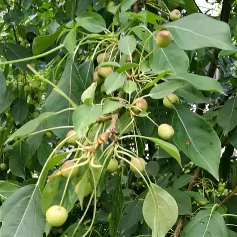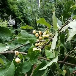果实:湖北海棠属于高海拔地区自然野生种,果实为纯天然、无污染的绿色食品。其果为梨果,椭圆形或近球形,直径约1厘米,黄绿色稍带红晕,8-9月采果实,鲜用,其味酸、性平,可代山楂入药,消积化滞,治疗痢疾,疳积。所以其果实是一味很好的健胃消食药材,并可以酿酒。