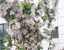 湖北海棠属落叶小乔木,干皮、枝条、嫩梢、幼叶、叶柄等部位均呈紫褐色,花蕾时粉红,开后粉白,小果红色,为春秋两季观花,是优良绿化观赏树种。
