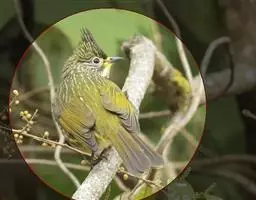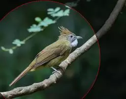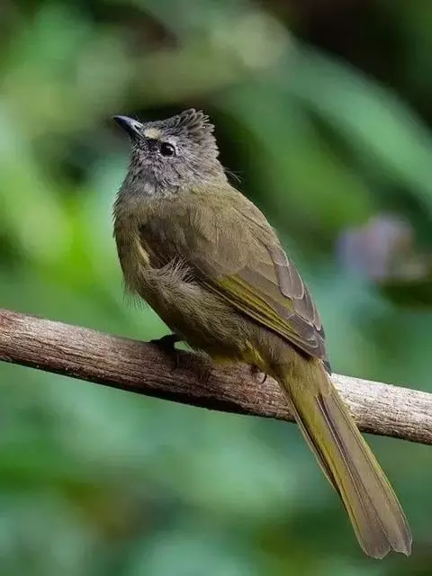 黄腹冠鹎:体长19-24厘米,是一种体型略大的褐色鹎。头顶橄榄褐色具黑褐色羽冠。白色的喉膨起,…