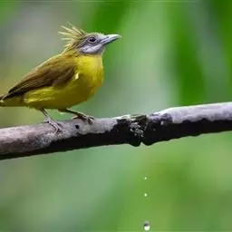 黑冠黄鹎:体长18-21厘米,是一种中等体型偏黄色鹎。整个头、颈、颏、喉黑色,头顶有显著直立的羽冠,…