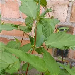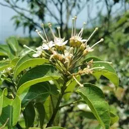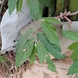 叶互生,掌状复叶,小叶3-7片,多为5片,倒卵状长椭圆形或椭圆形,中央小叶较大,长7-14厘米,上半部边缘有锯齿,先端突尖或渐尖,基部楔形。