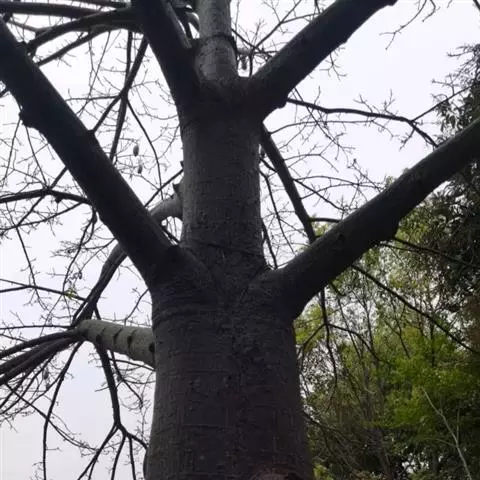 落叶乔木,高12-18米。树干挺拔,树皮绿色或绿褐色,光滑,韧皮纤维发达,具圆锥状尖刺(罕见无刺的),成年树下部膨大呈酒瓶状;大枝轮生,水平伸展或斜举,树冠伞形。