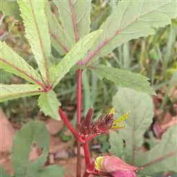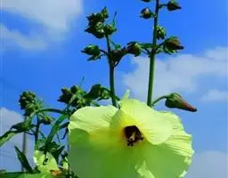 咖啡黄葵 Moench)亦称黄秋葵,是锦葵科一年生草本植物。茎圆柱形,疏生散刺。叶掌状,裂片阔至狭,…