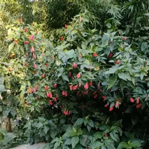 红萼苘麻是锦葵科、苘麻属常绿软木质灌木,叶绿色,长5-10厘米,心形,叶端尖,叶缘有钝锯齿,有时分裂,…