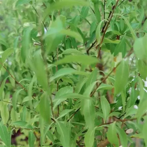 直立灌木,高1-2米;枝条密集,小枝稍有稜角,黄褐色,嫩枝具短柔毛,老时脱落;冬芽卵形或长圆卵形,先端急尖,有数个褐色外露鳞片,外被稀疏细短柔毛。叶片长圆披针形至披针形,长4-8厘米,宽1-2.5厘米,先端急尖或渐尖,基部楔形,边缘密生锐锯齿,有时为重锯齿,两面无毛;叶柄长1-4毫米,无毛。