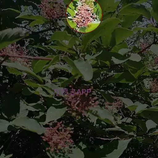 花序为长圆形或金字塔形的圆锥花序,长6-13厘米,直径3-5厘米,被细短柔毛,花朵密集;花梗长4-7毫米;苞片披针形至线状披针形,全缘或有少数锯齿,微被细短柔毛;花直径5-7毫米;萼筒钟状;萼片三角形,内面微被短柔毛;花瓣卵形,先端通常圆钝,长2-3毫米,宽2-2.5毫米,粉红色;雄蕊50,约长于花瓣2倍;花盘圆环形,裂片呈细圆锯齿状;子房有稀疏短柔毛,花柱短于雄蕊。