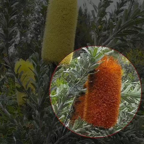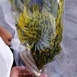 帝王花,山龙眼科帝王花属多年生常绿灌木植;茎干粗壮,叶色翠绿光亮;花朵呈圆球状;其苞片有的完全打开,…