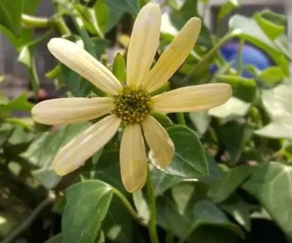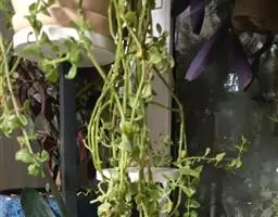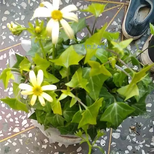 绿玉菊(Senecio macroglossus)为菊科千里光属多年生肉质植物。植株匍匐或悬垂、向上攀援生长,茎圆柱形,红褐色,叶互生,具叶柄,肉质,很脆,易折断,叶色深绿,有浅色的脉纹,小花乳白色,有黄心。绿玉菊原产非洲南部,喜温暖干燥和阳光充足的环境,耐干旱和半阴,怕积水,忌烈日暴晒。绿玉菊枝条婀娜飘逸,叶色翠绿质厚,是优美的室内观叶植物,适合作中小型盆栽摆放于柜顶、桌角,或作吊盆栽种,任其枝叶悬垂生长,具有很好的装饰效果。