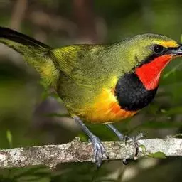 银耳相思鸟小型鸟类,体长14~18厘米。头顶黑色,耳羽银灰色,前额橙黄色;外侧飞羽橙黄色,基部朱红色,…