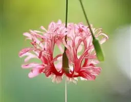 萝藦 总状式聚伞花序腋生或腋外生,具长总花梗;总花梗长6-12厘米,被短柔毛;花梗长8毫米,被短柔毛,着花通常13-15朵;小苞片膜质,披针形,长3毫米,顶端渐尖;花蕾圆锥状,顶端尖;花萼裂片披针形,长5-7毫米,宽2毫米,外面被微毛;花冠白色,有淡紫红色斑纹,近辐状,花冠筒短,花冠裂片披针形,张开,顶端反折,基部向左覆盖,内面被柔毛;副花冠环状,着生于合蕊冠上,短5裂,裂片兜状;雄蕊连生成圆锥状,并包围雌蕊在其中,花药顶端具白色膜片;花粉块卵圆形,下垂;子房无毛,柱头延伸成1长喙,顶端2裂。蓇葖又生,纺锤形,平滑无毛,长8-9厘米,直径2厘米,顶端急尖,基部膨大;种子扁平,卵圆形,长5毫米,宽3毫米,有膜质边缘,褐色,顶端具白色绢质种毛;种毛长1.5厘米。花期6-9月,果期9-12月。