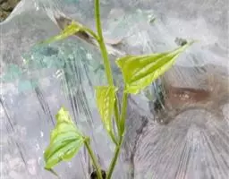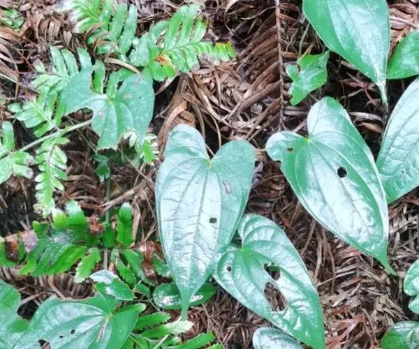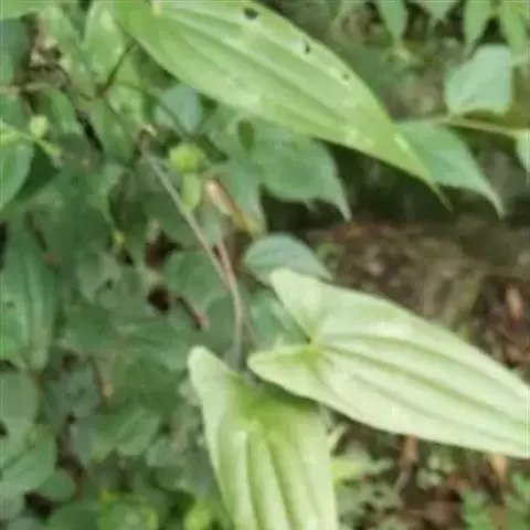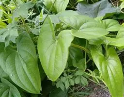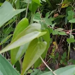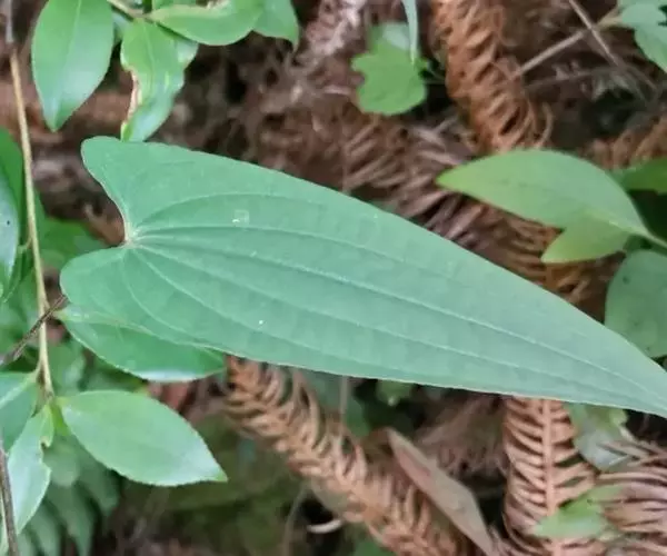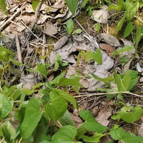 第二种山药:为无性繁殖,茎圆柱形,叶片心形,无花,叶腋间着生“山药豆”,秋冬茎叶枯萎后“山药豆”落地,第二年开春发芽。