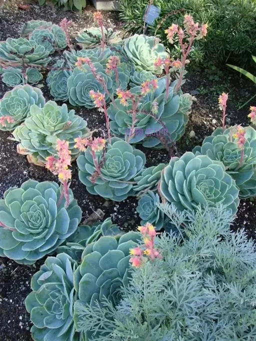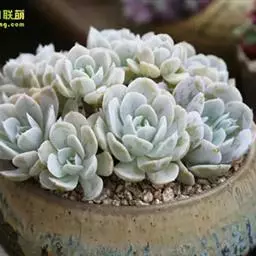 吉娃莲,景天科拟石莲花属,别名:吉娃娃,吉娃莲,植株小型,无茎的莲座叶盘非常紧凑。卵形叶较厚,带小尖,…