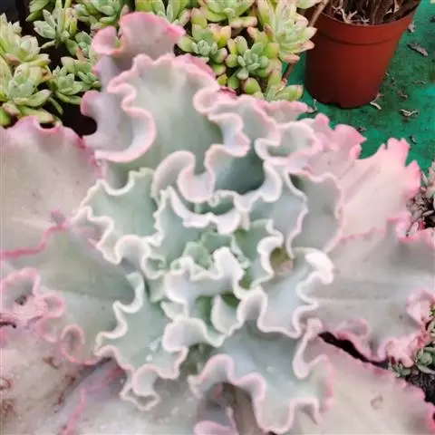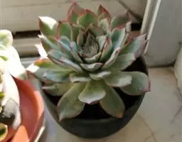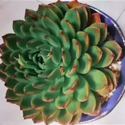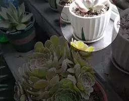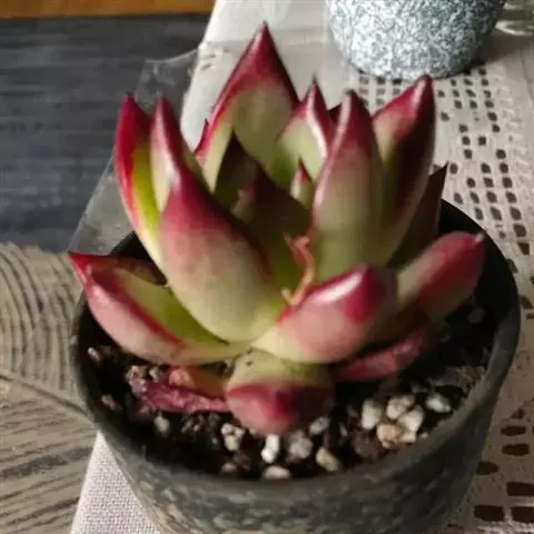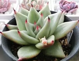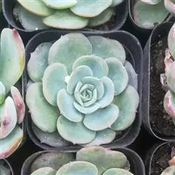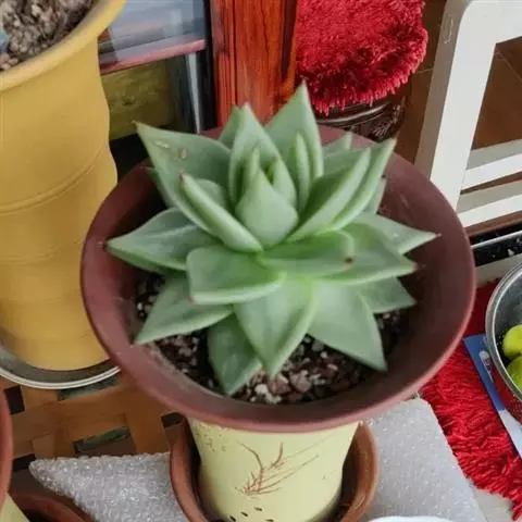 大和锦是景天科拟石莲花属的多肉植物。肉质叶排成紧密的莲座状,广卵形至散三角卵形,背面突起呈龙骨状,…