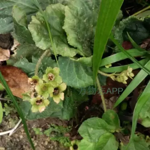 植株矮小,具粗长的根状茎。叶阔卵形至近圆形,长1.5-5厘米,宽1-4厘米,边缘呈浅波状。花葶高1-4厘米,短于叶丛,顶生1-5花。