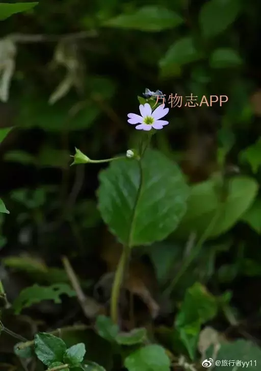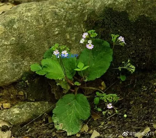 鄂报春(学名:Primula obconica Hance):报春花科,报春花属多年生草本植物,根状茎粗短,叶卵圆形、椭圆形或矩圆形,上面近于无毛或被毛,毛极短,下面沿叶脉被多细胞柔毛,花葶1至多枚自叶丛中抽出,伞形花序2-13花,苞片线形至线状披针形,花萼杯状或阔钟状,裂片倒卵形,花异型或同型,雄蕊着生于冠筒中上部,蒴果球形,直径约3.5毫米。3-6月开花。