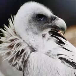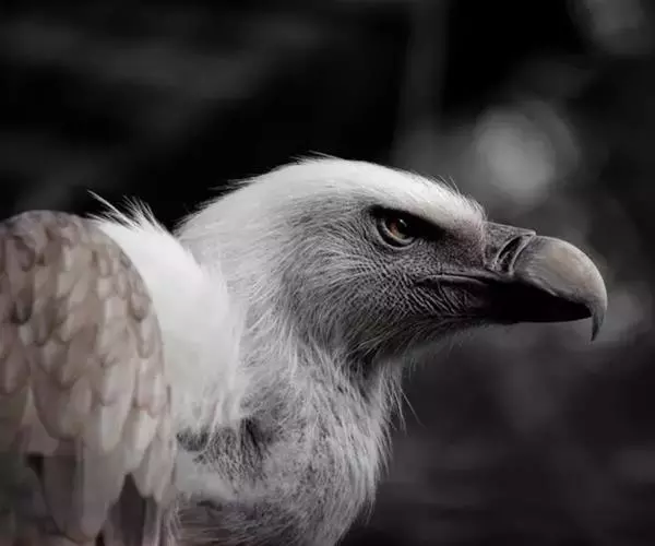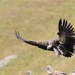 高山兀鹫头和颈上部被有污黄色像头发一样的羽毛,到下颈羽毛逐渐变白和变成绒羽,颈基部有长而呈披针形的簇羽形成领翎围绕在颈部,淡皮黄色或黄褐色,具有中央白色羽轴纹。背和翅上覆羽淡黄褐色,羽毛中央较褐,形成一些不规则的褐斑,外侧大覆羽、飞羽和尾羽暗褐色,内侧次级飞羽具淡色尖端。上胸为密的白色绒羽和被有淡褐色胸斑,其余下体淡皮黄褐色,肛区和尾下覆羽全白色,具不清晰的羽轴纹。幼鸟头部褐色,绒羽较成鸟多。上体暗褐色,背、肩和翅上覆羽具粗著的黄白色纵纹,初级飞羽和尾羽黑褐色。下体暗褐色,具淡色羽轴纹。