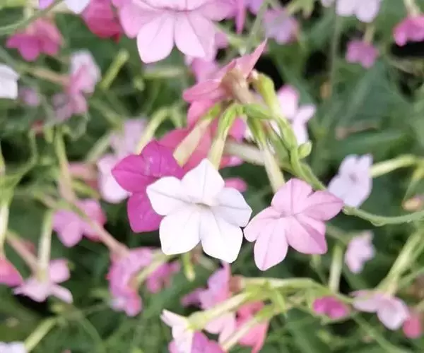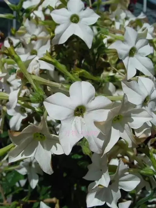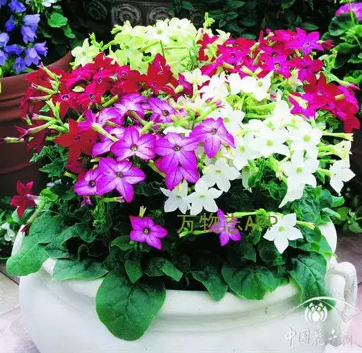 花烟草又叫烟草花,由于植株紧凑,连续开花,是优美的花坛、花境材料,广泛用作盆景、庭院、草坪绿化植物。