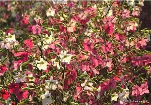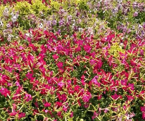 花烟草的整体根系呈自立化,花型圆圆的,呈喇叭状,而且颜色丰富,看起来很美。花烟草也是一种十分有趣的花,它一般在阴暗的天气或者晚上开放,晴天就会闭合,十分有趣。花期时间长,为两个月。具有很好的观赏价值。