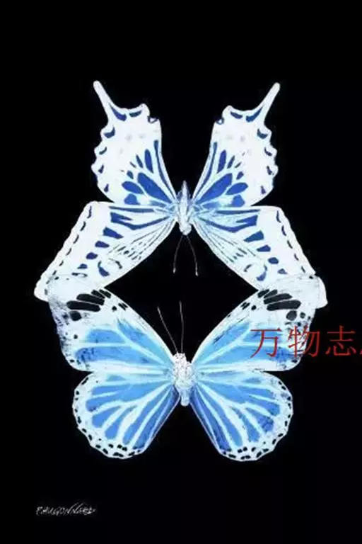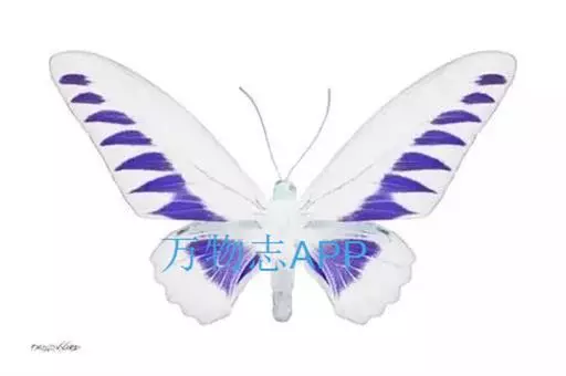 天堂凤蝶翅展可达105mm。前、后翅自基角至后缘约1/2~2/3端为纯净的宝蓝色,后角至后缘1/3…