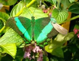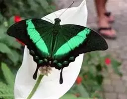天堂凤蝶翅形优美而巨大,全身在黑天鹅绒质的底色上闪烁纯正蓝色的光泽,仿佛从艳阳青天而降,所以被当地土著认作是来自天堂的使者,并将它们命名为“天堂凤蝶”。该蝶也是澳大利亚昆士兰州的旅游象征物。