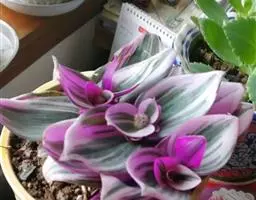 裸花水竹叶为多年生草本。须根发达。茎丛生,横卧,肉质,节处生不定根,节部明显,节间微带紫色,分枝多。叶互生,略肉质;线状披针形,长3~10厘米,宽1厘米左右,上面深绿色,下面两侧有时具紫色斑点,全缘,边缘紫红色;具叶鞘,抱茎节,鲜紫红色,边缘有刚毛。为总状形聚伞花序,生于枝顶或顶端叶腋,花直径1.2厘米;花萼3,长卵形,先端略尖,绿色;花瓣3,倒卵圆形,较萼片长1/3,蓝紫色;雄蕊6,其中2枚发育,花药黑色,1枚仅有花丝,3枚退化,其花丝略短,顶部成扁平的小蝶形花药,黄色,所有花丝均有蓝紫色长毛;子房3室,每室2个胚珠。果实每室有种子2粒。花期8~9月。生于潮湿的沟边及荒地。