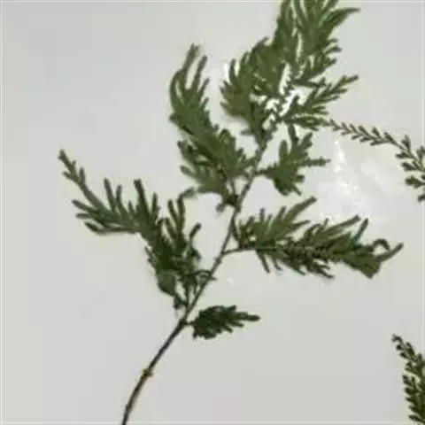 侧叶不对称,小枝上的叶距圆形,略斜升,2.9-3.2毫米X1.4-1.5毫米,先端具芒,边缘全缘,基部上侧扩大,加宽,覆盖小枝,基部上侧边缘不为全缘,呈撕裂状,基部下侧不呈耳状,边缘不为全缘,呈撕裂状,下侧边缘内卷。